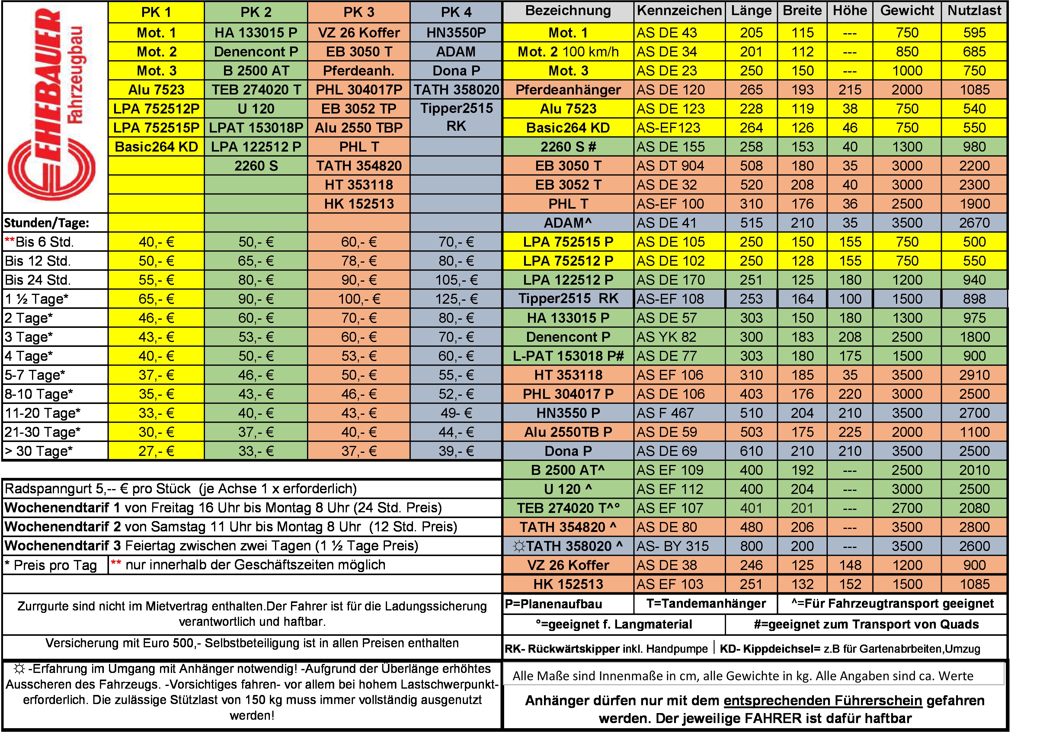 Wir haben laufend über 50 Anhänger aus sämtlichen Kategorien im Verleih. Gerne beraten wir Sie telefonisch und reservieren Ihnen den gewünschten Anhänger. Rufen Sie uns zu unseren Öffnungszeiten an. Auch die Anhängerabholung und Rückgabe ist innerhalb dieser Zeiten möglich.